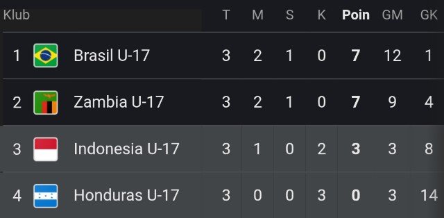 Klasemen Akhir Grup H Piala Dunia U-17 2025